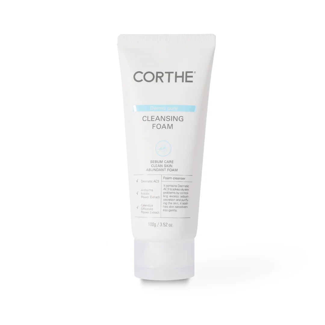 Corthe Dermo Pure Cleansing Foam is a gently exfoliating foaming cleanser made for oily skin. The whipped foam gently removes excess sebum and skin impurities, leaving skin feeling fresh, cleansed, and balanced.